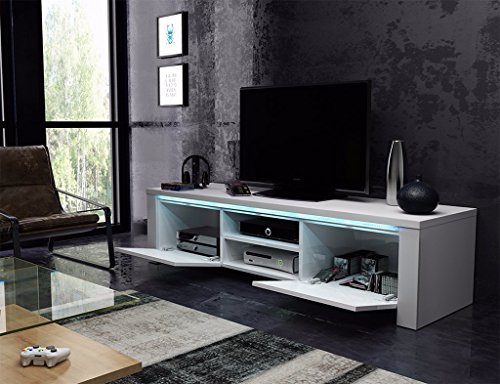 Marco - Mobile TV Audio e Video/Mobiletto Porta TV (140 cm, Bianco Opaco/Bianco Lucido con luci LED)
