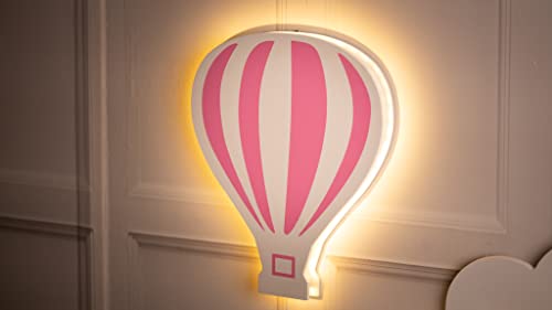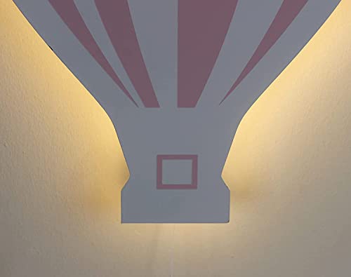 Marco Paul Interiors Lampada da parete in legno bianca, per cameretta dei bambini, decorazione camera da letto, comodino (mongolfiera rosa)