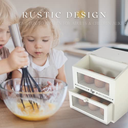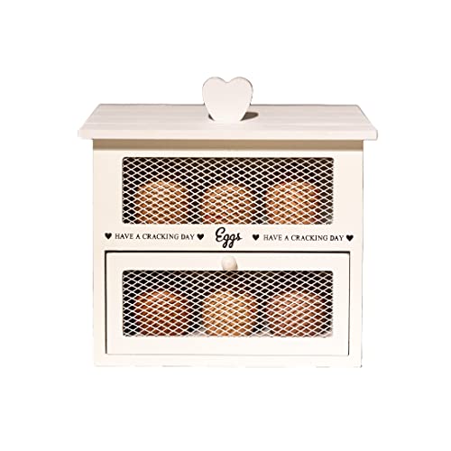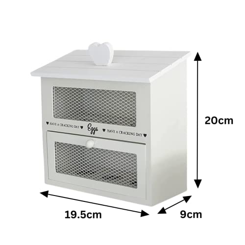 Marco Paul - Portauova in legno bianco shabby chic, porta uova color crema, contenitore per alimenti rustico, per fino a 6 uova