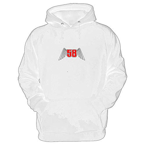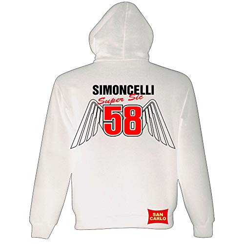 Red i, Marco Simoncelli Moto GP 58, Felpa Cappuccio, Grafica con Ali, Bianca, Taglie S-XXL - XL