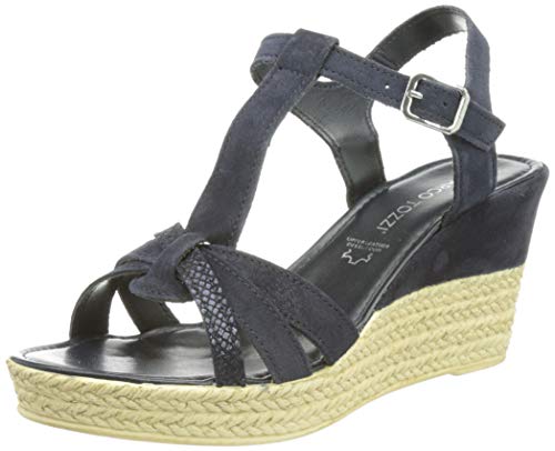 Marco Tozzi 2-2-28387-26-Sandali Pelle Scamosciata, Sandali con Zeppa Donna, Blu Navy, 39 EU