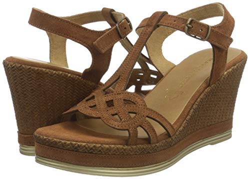 Marco Tozzi Sandali con Zeppa in Pelle Scamosciata, 2-2-28018-26, Donna, Noce Moscata, 36 EU