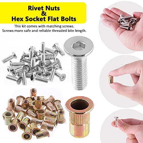 Kit completo per rondella paraurti parafango: il kit bulloni per rondella parafango include 20 rondelle per paraurti nere M6, 20 bulloni in acciaio inossidabile M6 x 20 mm, 20 dadi per rivetti zincati M6, 1 chiave esagonale M4 per installazione rapida, totalmente 61 pezzi. Il set completo di rondelle e bulloni soddisferà la vostra richiesta di sostituzione.