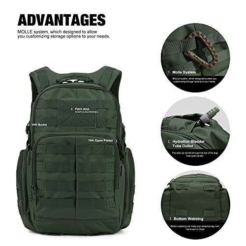 ✨Zaino militare resistente: realizzato in nylon impermeabile di alta qualità e robusta cerniera YKK. Cuciture rinforzate e schienale robusto aumentano la durata. I materiali di alta qualità possono portare un migliore senso di sicurezza.