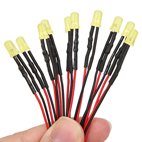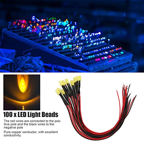 Marhynchus 100pcs 12V Diodi componenti elettronici diodi emettitori di luce LED Perline luminose Trasparenti 5mm Diodi emettitori di luce precablati con 20 cm Wire LED Light Beads(Yellow to Yellow)
