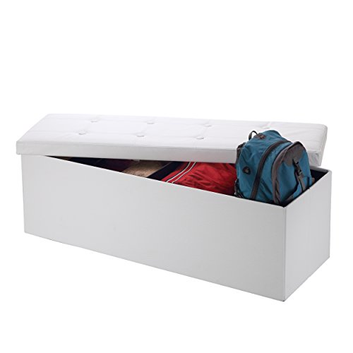 Mari Home Poggiapiedi Contenitore - Pouf Portaoggetti in Ecopelle per l'Arredamento della Casa, in Camera da Letto e Salotto - Sgabello da Soggiorno con capacità di 300 kg - 110x38x38 cm - Bianco