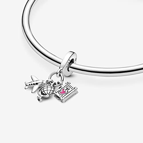 MariaFonte Charm New 2023 Compatibile Tutte Marche Pendente Aereo Mondo Valigia Aeroplano Viaggio Compleanno Anniversario Ciondoli Originale Offerte Argento Mamma Bead Portafortuna Cuore Natale