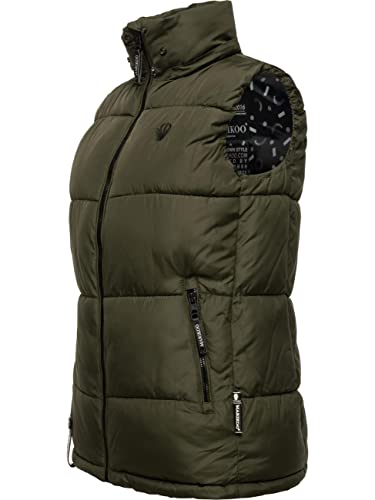 MARIKOO Gilet trapuntato, da donna, con cappuccio in pelliccia sintetica rimovibile, taglie XS-3XL, Oliva, XS