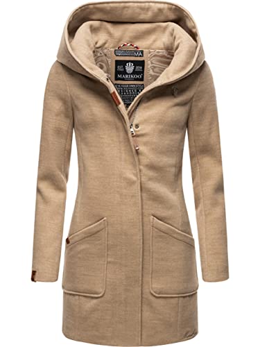 Modello: elegante cappotto da donna effetto lana con cappuccio di Marikoo, perfettamente combinabile con look elegante o urbano.