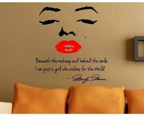 Marilyn Monroe face and red lip with quote wall sticker art decor girl's bedroom wall decal decor gilr's birthday gift by fungoo