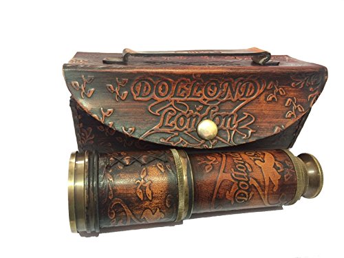 Marine Nautical Store Vintage Antico Marittimo Ottone Cuoio Telescopio Pirata Spyglass Scope w/Cover