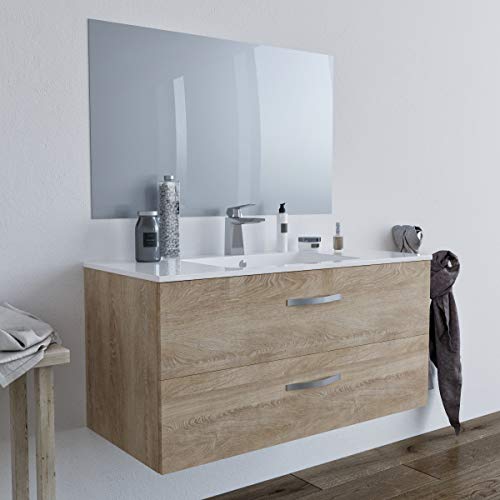 MarinelliGroup Mobile bagno SOSPESO 100 cm con lavabo in ceramica e specchio con cassetti ROVERE CHIARO LINDA 8210
