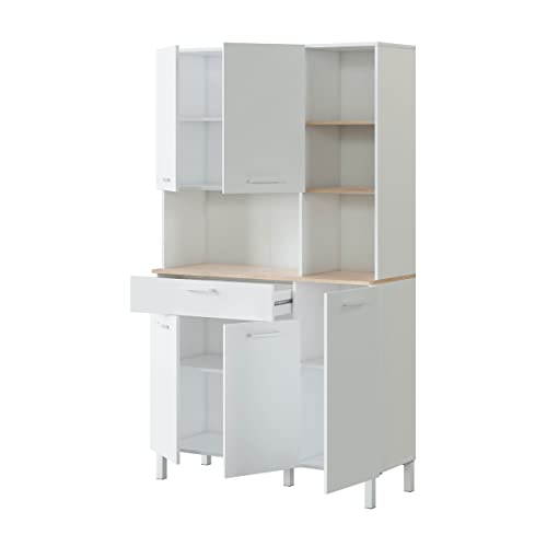 MarinelliGroup Mobile credenza cucina moderno BIANCO+ROVERE 5 ante cassetto 108 X 40 X 186 cm 0F9950A