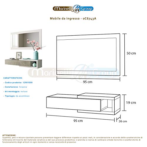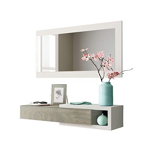 MarinelliGroup Mobile ingresso SOSPESO con cassetto ripiano e specchio ROVERE + BIANCO 95 X 29 X 19 cm - 0C6743A
