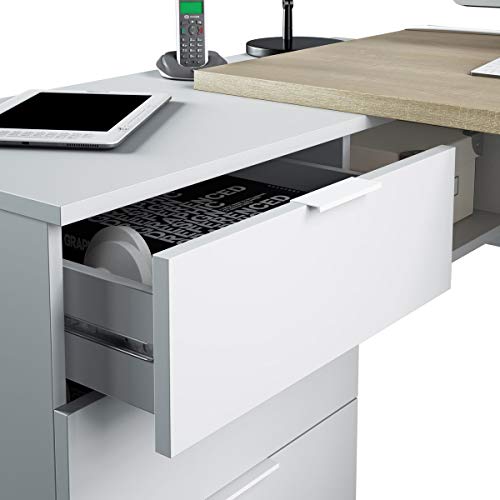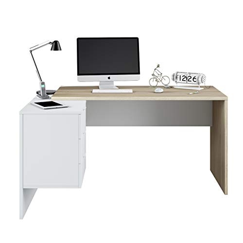MarinelliGroup Scrivania pc ufficio reversibile angolare studio casa bianco OPACO + rovere computer gaming 145 X 108 X 73 cm - 0F4655A