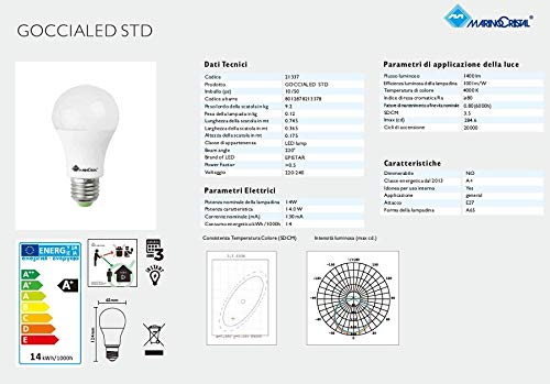 Marino cristal 21337 goccialed std 14w (ex 96w) e27 230v luce naturale 4000°k 1400 lumen