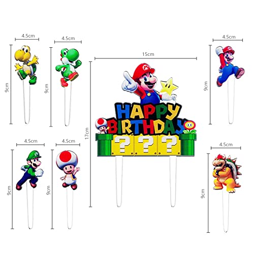 Mario Cupcake Topper 7 Pezzi,Mario Cupcake Decorazioni,Decorazioni Torta Mario Torta,Mario Birthday Torta Decorazioni Party,Mario Decorazione per Feste di Cartoni Animati