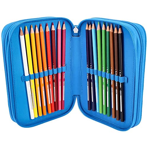 Contiene 18 pennarelli, 18 matite colorate, matita, gomma, penna cancellabile Frixion blu, penna rossa, righello, temperino, forbici con punta arrotondata, squadra ed evidenziatore.