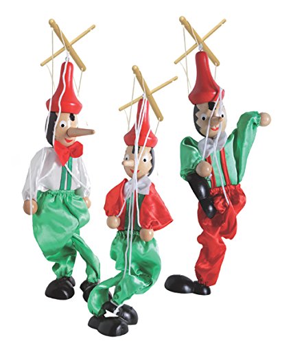 Marionette "Pinocchio" set da 3 pezzi, in stoffa e legno, cm 45