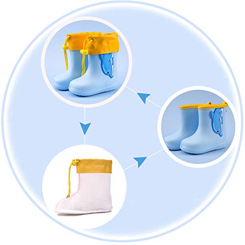 MARITONY Stivali di gomma per bambini con imbottitura in gomma per bambini e bambine, leggeri, impermeabili, antiscivolo, con coulisse, (B blu.), 19 EU