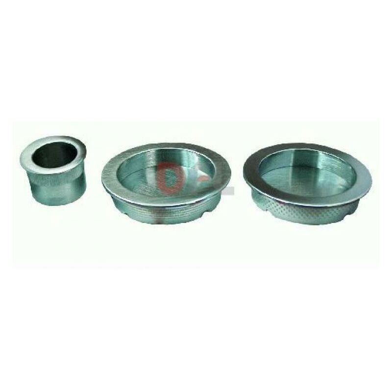 KIT MANIGLIE PER PORTE SCORREVOLI FINITURA CROMATO SATINATO ø mm 48 KIT MANIGLIE PER PORTE SCORREVOLI Due nicchie ø mm 48, e un nottolino ø mm 25. Finitura cromo satinato