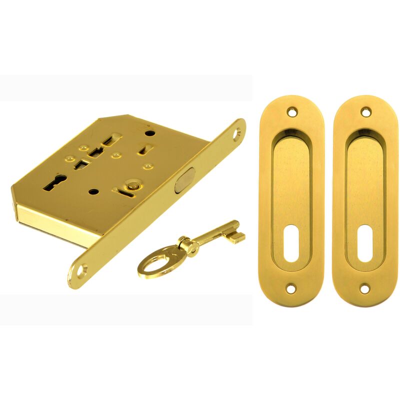 Composto da - serratura solo chiave entrata 50 mm - coppia nicchie in ottone mm 30x85 con foro chiave - chiave snodata -nicchia di trascinamento 25 mm Finitura lucido verniciato