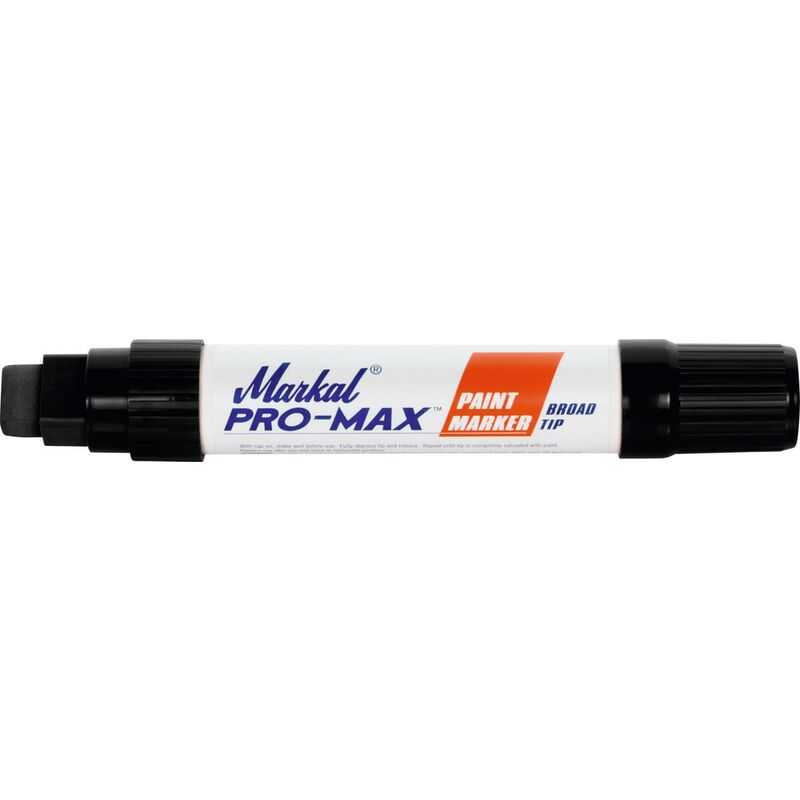 Marcatore a vernice inodore, punta a cuneo con larghezza tratto da 5 a 14 mm, resistente all'acqua, alle intemperie e ai raggi UV. Uso: Ideale per evidenziazioni su superfici oleose e grasse. Dati tecnici Tipo di prodotto Marcatori a vernice Colore inchiostro nero Resistente ai raggi UV sì Denominazione originale prodotto PRO-MAX Impermeabili all'acqua sì