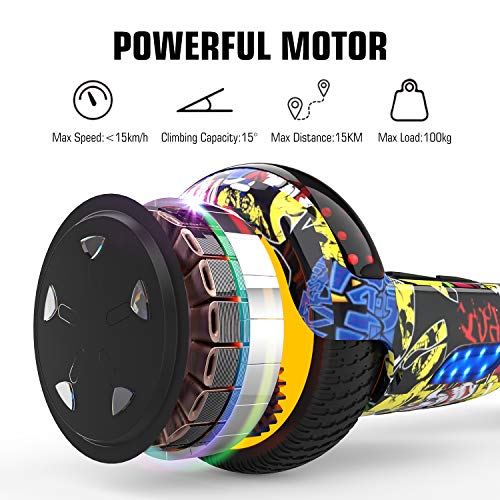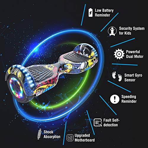MARKBOARD Hoverboards 6,5 Pollici con Hoverkart Scooter Elettrico Luci a LED con Altoparlante Bluetooth Ruota Colorata