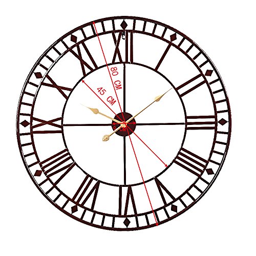 Markliu Orologio da parete con numeri romani grande rotondo in metallo scheletro per interni/giardino esterno orologio decorativo 80 cm