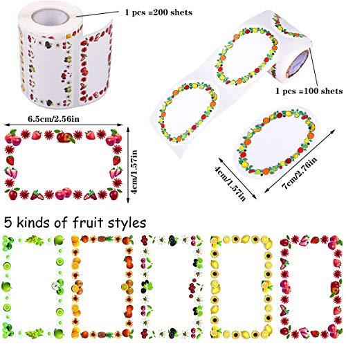 Pattern di Frutta: motivi adesivi pre-disegnati di frutta dolce, dimensioni dell'etichetta: Square 65*40,Oval 45*70 per spazio sufficiente per l'etichettatura.