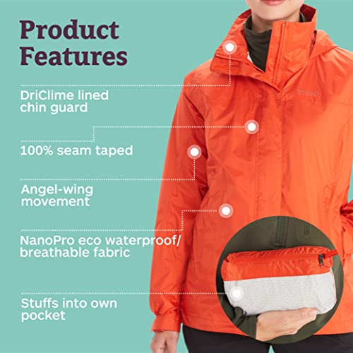 Marmot Wm's PreCip Eco Jacket, Giacca Antipioggia Rigida, Ultraleggera, Antivento, Impermeabile, Traspirante Donna, Red Sun, XS