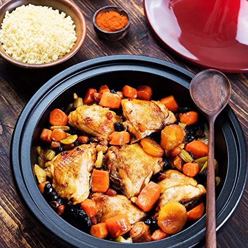 Tajin marocchino per cucinare come stufato, per una dieta sana. Questa pentola trattiene il calore e distribuisce uniformemente il calore per cuocere gli ingredienti delicatamente. Questo metodo di cottura porta alla conservazione del proprio gusto e dei nutrienti. Che si tratti di verdure, pesce, carne o dessert, tutto viene cotto con poco grasso o liquido delicato sulla vitamina, che conferisce ai piatti un sapore molto speciale e mantiene l'aroma naturale