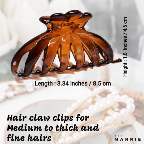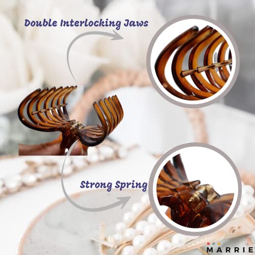 Marrie Fermagli per capelli per donne e ragazze, con doppia ganasce antiscivolo, morsetto per una tenuta forte, per capelli da medi a sottili e lunghi, marrone, trasparente)