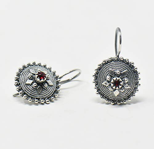 Orecchini bottone sardo con pietra rossa centrale Swarovski