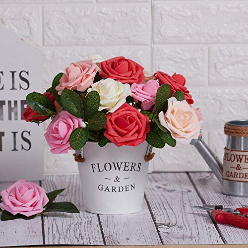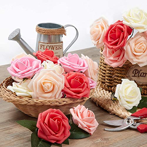 Marry Acting, 30 rose artificiali realistiche al tatto, ideale come regalo per il giorno della mamma, per bouquet fai da te, per feste di matrimonio, presentazione del bebè, decorazione della casa, Gradual Change Color 1, Rose head approx. 3-4 inches