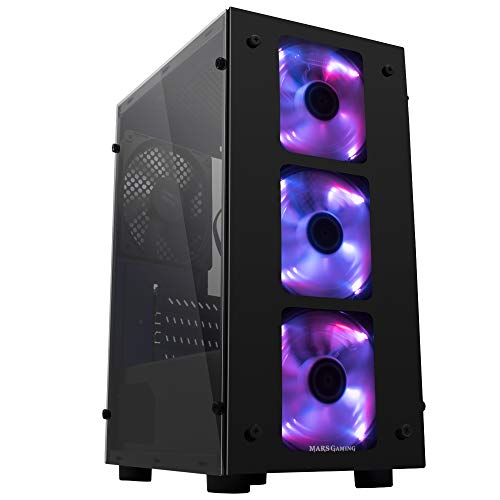 Mars Gaming MCT, caja de Pc Micro ATX, 3 Ventiladores RGB 12cm, VGA hasta 30cm