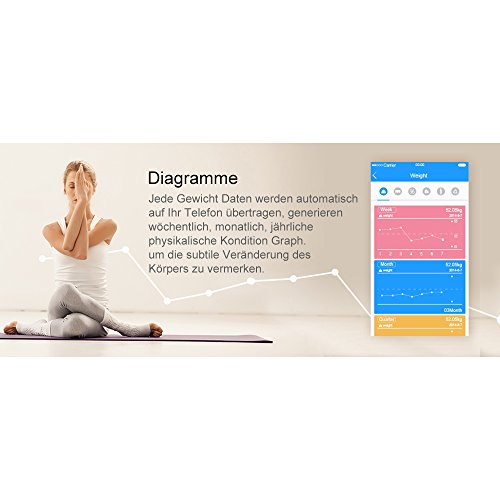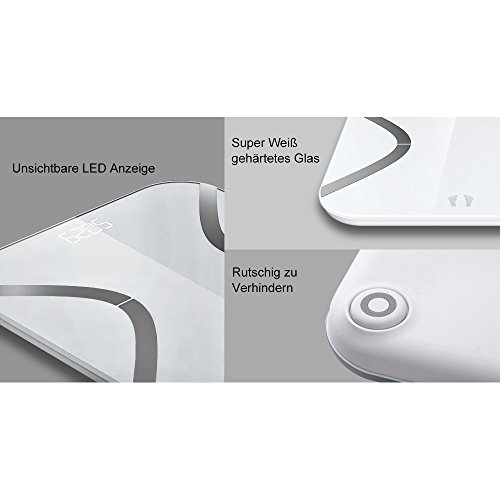 Marsboy Mini LED Bluetooth Multi Funzione Bilancia Pesapersone grasso corporeo bilancia Peso grasso corporeo analisi wiegen Peso grasso corporeo BMI BMR acqua muscolare e ossa Design ecc.