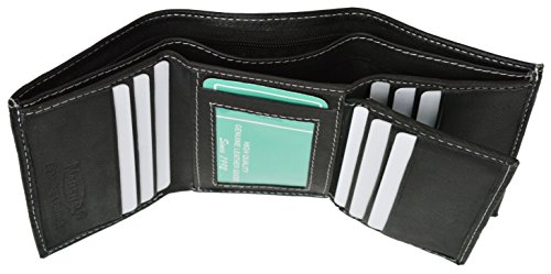 Marshal 100% cuoio Tri-Fold portafoglio da uomo nero # 961107