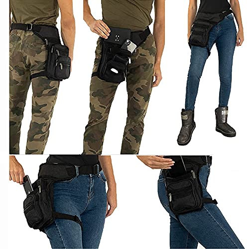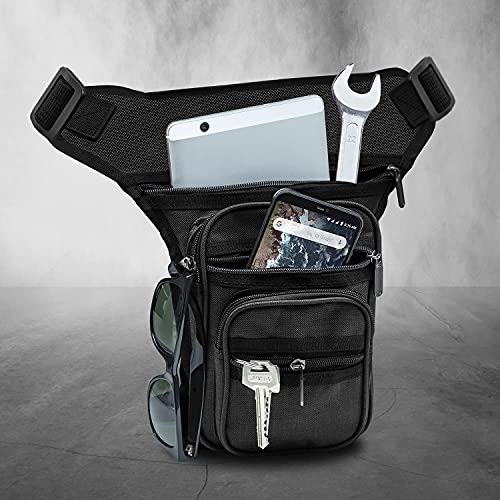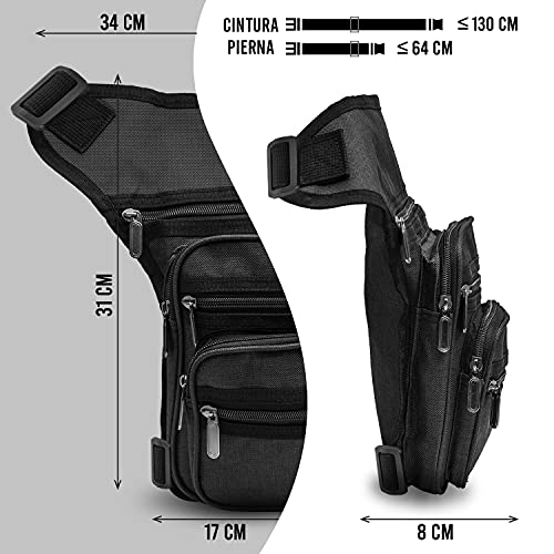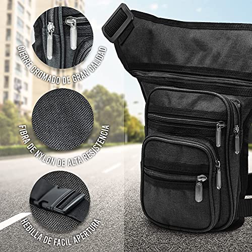 Marsupio Gamba Moto Tracolla Uomo Marsupio per Moto Borsa a Gamba Impermeabile Marsupio Gamba Marsupio Multiuso, Marsupio Elettricista (+5 Tasche) e Doppio fissaggio Unisex, Nero, Talla única