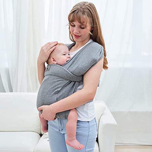Marsupio per neonato, marsupio a forma di X da indossare (fino a 33 libbre), tutte le posizioni e supporto completo per neonati e bambini piccoli, 100% cotone traspirante, regalo per la doccia,Grigio