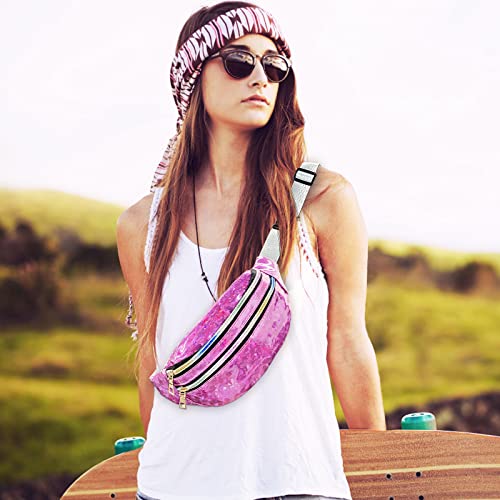 Marsupio Olografico Uomo Donna, Bum Bag Impermeabile Cinghia Regolabile per Escursionismo Campeggio Corsa Ciclismo All Aperto Rosa