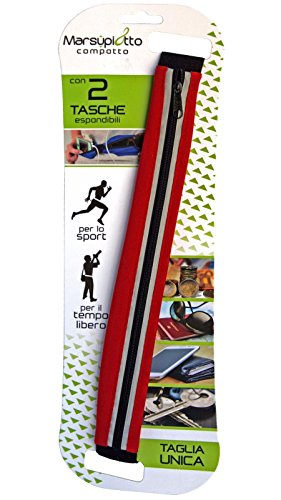 MARSUPIO SLIM ELASTICO Due Tasche con Zip Riflettente Marsupiotto Sport Tempo Libero (ROSSO)