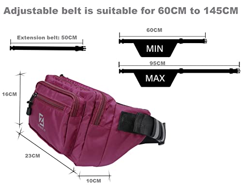 Marsupio Uomo Donna Grande Leggero con 4 Tasche e Fibbia a Sgancio Rapido per Escursionismo Sportivo Campeggio Ciclismo Cane a Passeggio - Viola