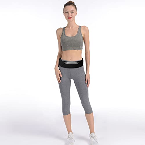 Marsupio uomo donna running impermeabile, porta cellulare, auricolari, chiavi, con strisce riflettente, cerniera zip e velcro, 2 taschette laterali, nero classico, taglia M.