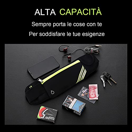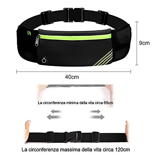 Marsupio uomo donna unisex, marsupio da corsa impermeabile, running sportivo, cerniera zip, strisce riflettente, porta cellulare, chiave, auricolari.