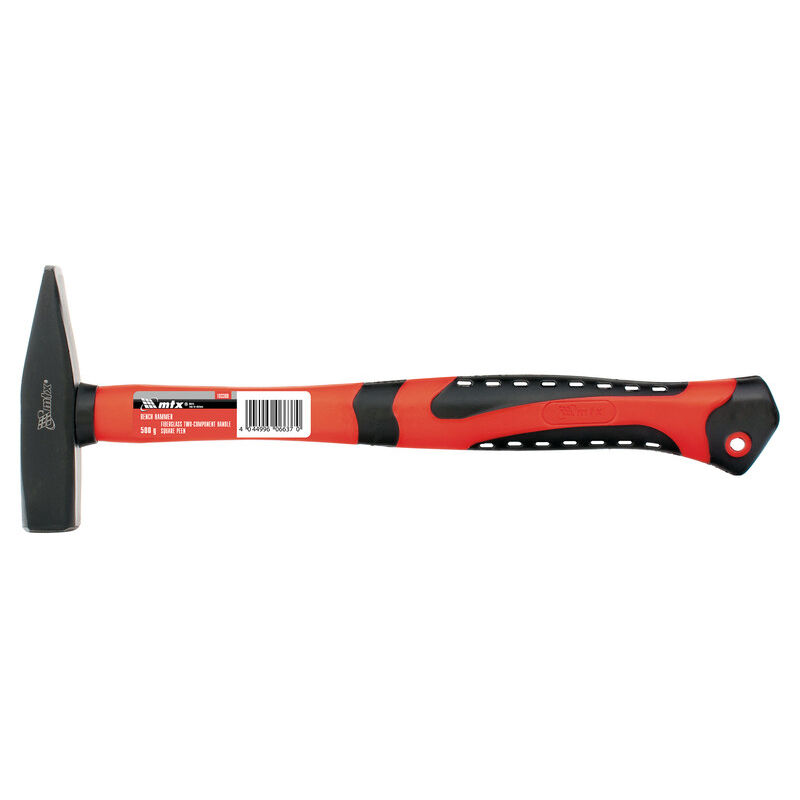 Questo martello MTX da 500g è stato progettato con una politica di durezza e resistenza per accompagnare al meglio l'utente durante i lavori. Ha una testa in acciaio forgiato (bordi arrotondati), e un manico ergonomico in fibra di vetro per unire efficienza e praticità. Informazioni tecniche: - Peso: 500g - Materiale testa: Acciaio 50 forgiato - Durezza: 52 HRC - Materiale manico: fibra di vetro.