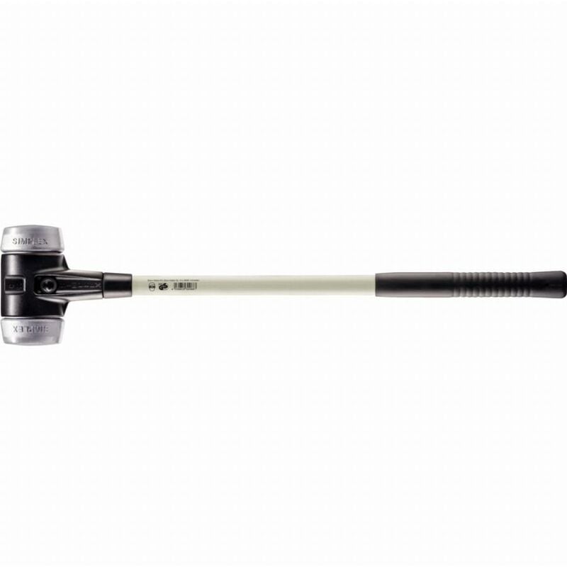 è dura, resistente al calore e sostituisce un martello convenzionale in piombo. Grazie all'aumento dello spessore delle pareti e dei distanziali, l'alloggiamento nero in ferro malleabile rinforzato garantisce un'elevata stabilità. Il peso maggiorato consente di ottenere un'elevata forza d'impatto. Il manico in fibra di vetro, molto robusto e durevole, ha una buona resistenza alla rottura. Ha un design ergonomico e un'impugnatura antiscivolo. La superficie è liscia e inorganica (insensibile all'umidità). Secondo il principio SIMPLEX, tutti i componenti sono intercambiabili e adattabili. Ciò consente di risparmiare non solo denaro, ma anche risorse. Questo martello è disponibile in D80mm con un peso totale di 4.650g e una lunghezza totale di 80cm. Caratteristiche del prodotto: Martello SIMPLEX con punta in metallo morbido su ciascun lato