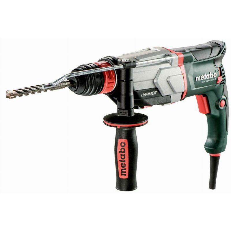 Dettagli: Martello combinato con 3 funzioni: foratura a percussione, foratura e scalpellaturaMetabo Quick: Cambio rapido tra martello SDS Plus e mandrino a serraggio rapido per la foratura di legno e metalloErgonomia perfetta grazie al baricentro vicino alla mano e ai contorni ottimizzati dell'impugnaturaInvertitore del senso di rotazione situato nella parte inferiore e protetto da danni e polvereElettronica Vario (V) per lavorare con velocità adattate al materialeMotore Metabo Marathon con protezione antipolvere per una lunga durataMeccanismo d'urto ad alte prestazioni alloggiato con precisione in una custodia in lega di alluminio: Robusta e di lunga durataFrizione di sicurezza automatica Metabo S: disinnesto automatico dell'azionamento in caso di inceppamento del trapano per un lavoro sicuro Interruttore bloccabile per un lavoro continuo più confortevoleCavo con snodo sferico per una grande libertà di movimento sul lavoroMassima energia d'impatto Energia massima di impatto per