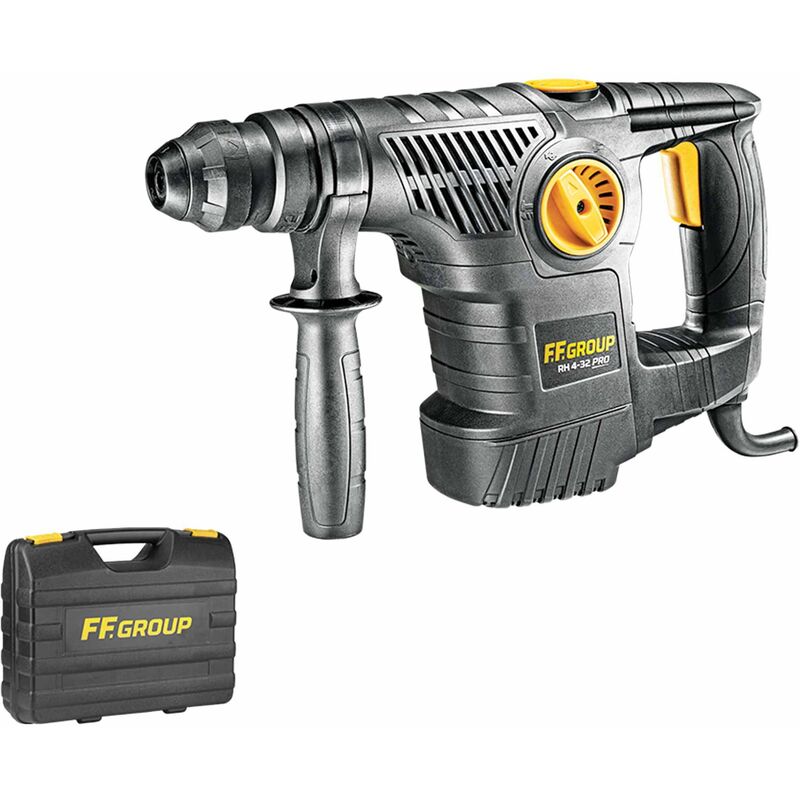 Martello demolitore FFgroup RH 3-28 PRO 1300W è dotato di un potente motore da 1.300W con selettore di velocità variabile. 2 funzioni: Martello perforatore/trapano a rotazione, scalpello Potente meccanismo pneumatico di foratura Mandrino SDS plus per una sostituzione rapida degli accessori SPECIFICHE TECNICHE Tensione nominale 230 V 50 HZ Potenza nominale assorbita 1.300 W Giri al minuto 0-850 min⁻¹ Frequenza colpi 0-4.500 min⁻¹ Forza colpo singolo 4,8 J Portautensili SDS Plus Cavo 4 m Peso 4,7 kg Capacità di foratura calcestruzzo 32 mm ACCESSORI IN DOTAZIONE Impugnatura ausiliaria Fornito con valigetta