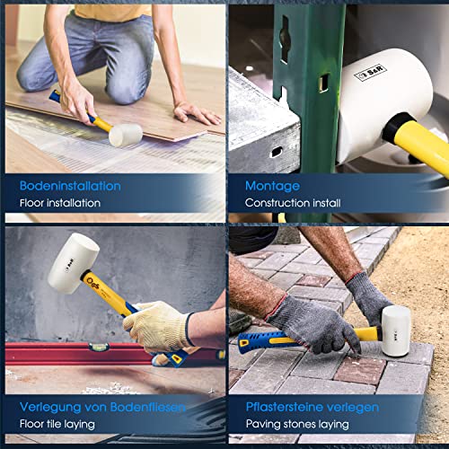 S&R Martello in Gomma Bianco da 910 Gr / 75 mm. Martello Professionale riduce le Vibrazioni e le Macchie.